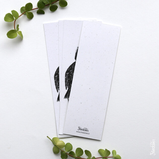 De boekenlegger is gemaakt van duurzaam ‘Environment birch’ papier met mooie spikkels in het papier. Dit papier (FSC gecertificeerd) bestaat voor min. 30% uit gerecyclede vezels. De achterkant van de boekenlegger is blanco (op het logo van Friedolien na).