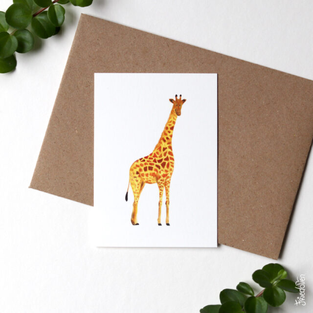 Schattig minikaartje met illustratie van een giraffe. Leuk cadeaukaartje voor aan een cadeautje of met een gaatje erin aan een bos bloemen.