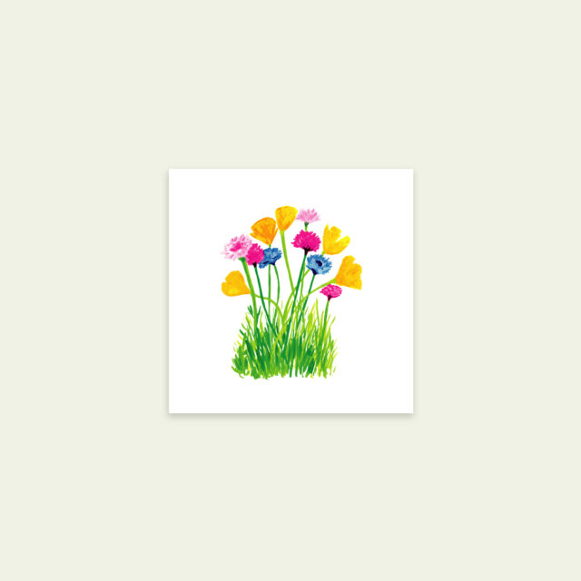 Een minikaartje met lieve veldbloemen. Leuk cadeaukaartje voor aan een cadeautje of bos bloemen.