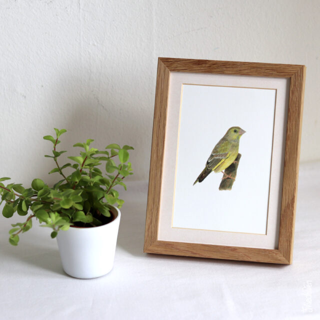 Kaart met groenling gemaakt van gebroken wit milieuvriendelijk papier. Eventueel kun je een envelop van Paperwise papier toevoegen (envelop gemaakt van landbouwafval).