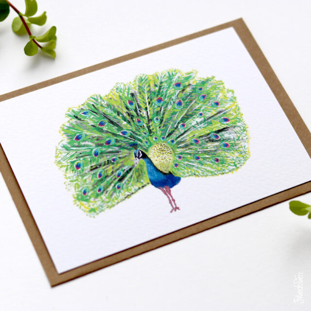 Tip: de pauw vind je ook op groter A4 formaat in de shop als print.
