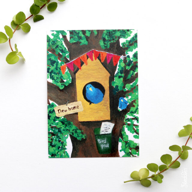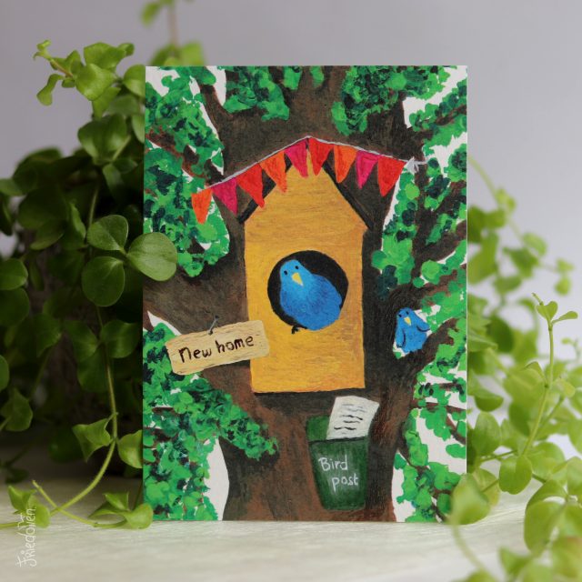 Een vrolijk kaartje om te versturen naar iemand die net verhuisd is of zijn of haar woning heeft opgeknapt.