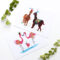 De alpaca’s en flamingo’s doen een dansje, omdat het feest is. Een kaartenset met vrolijke kaarten om te versturen voor een verjaardag of ander feestje.