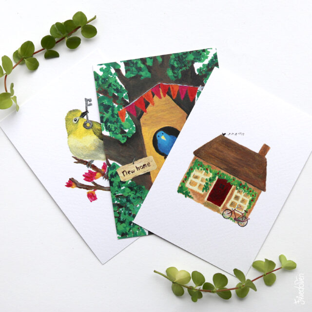 Kaartenset bestaande uit drie kaarten die leuk zijn om te versturen voor een nieuwe woning of wanneer je gaat verhuizen. De kaarten zijn gemaakt van stevig en luxe papier met een lichte textuur er in.