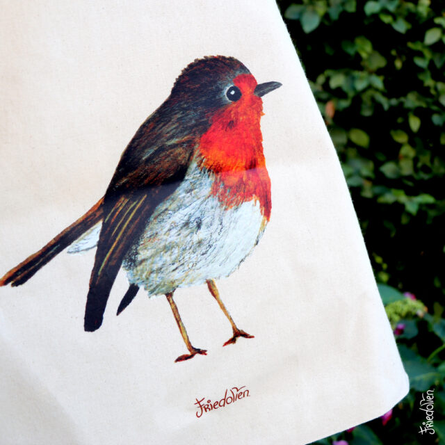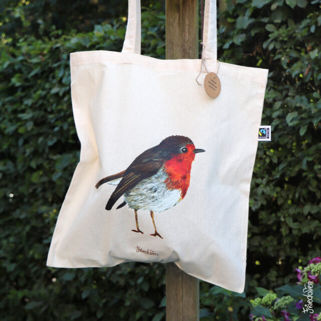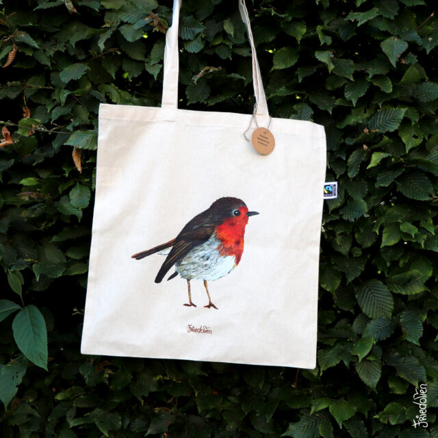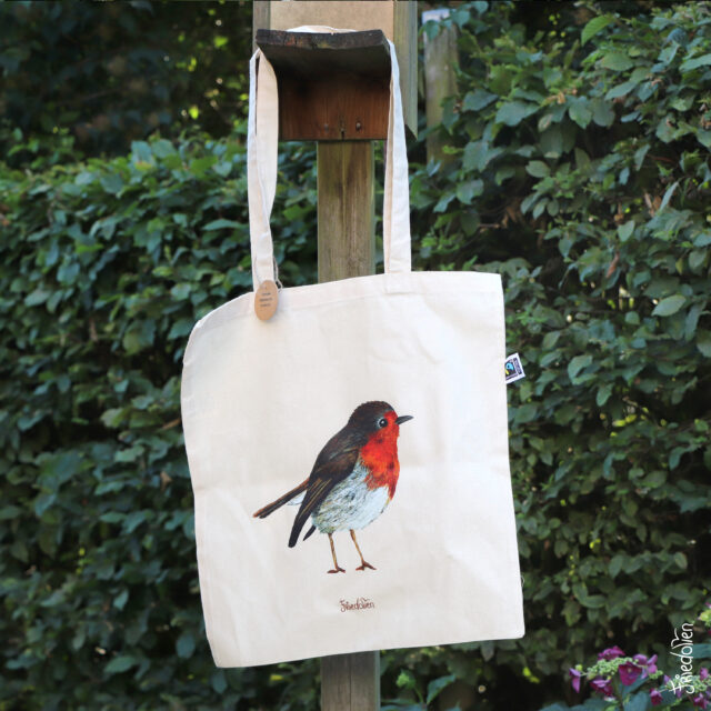 Stevige katoenen tas met illustratie van lief roodborstje. Leuk voor de natuurliefhebber en een duurzame keuze!