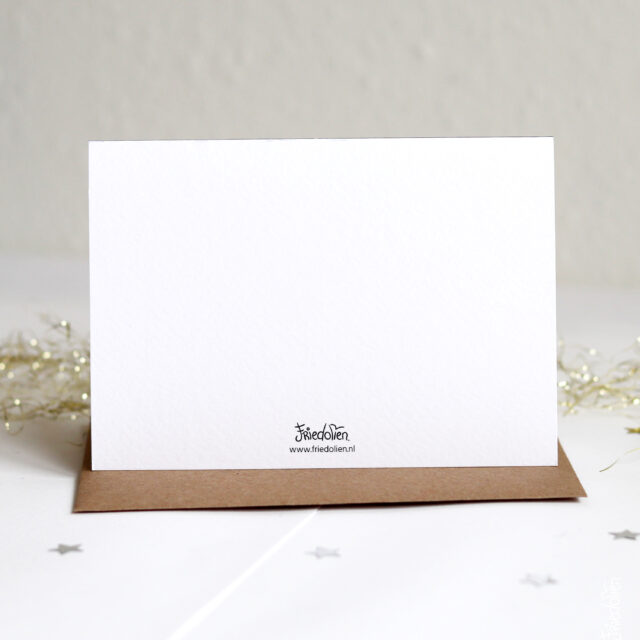 Een gevouwen kerstkaart gemaakt van luxe papier met een lichte structuur. Inclusief bruine kraft envelop. De binnenkant van de kaart is blanco.