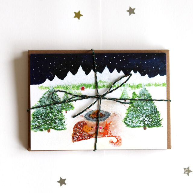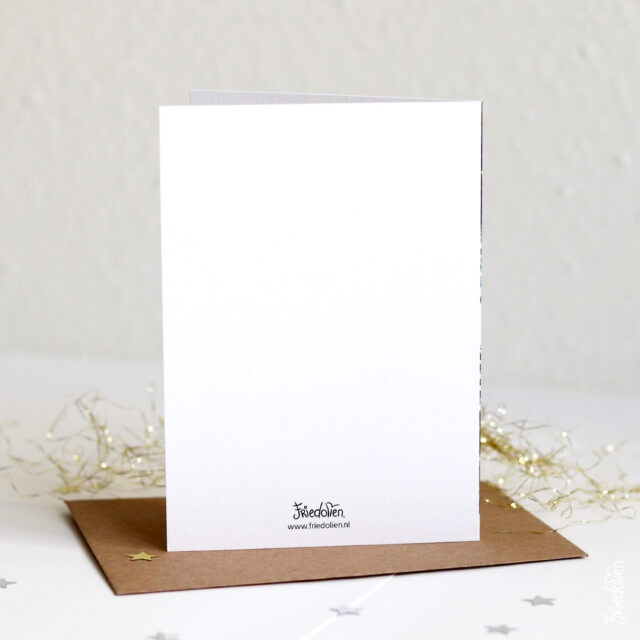 1x gevouwen kaart bosdieren onder sterrenhemel – met envelop